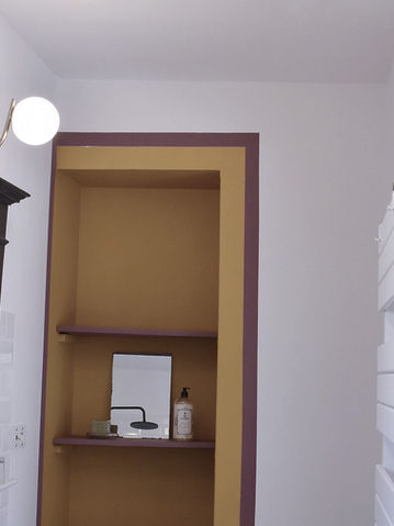 On the first floor, the "bouteilles" room faces south with a view of the garden. Carefully decorated, it elegantly blends modernity and tradition with its original parquet floor and a wall of hand-painted vibrant bottles.
